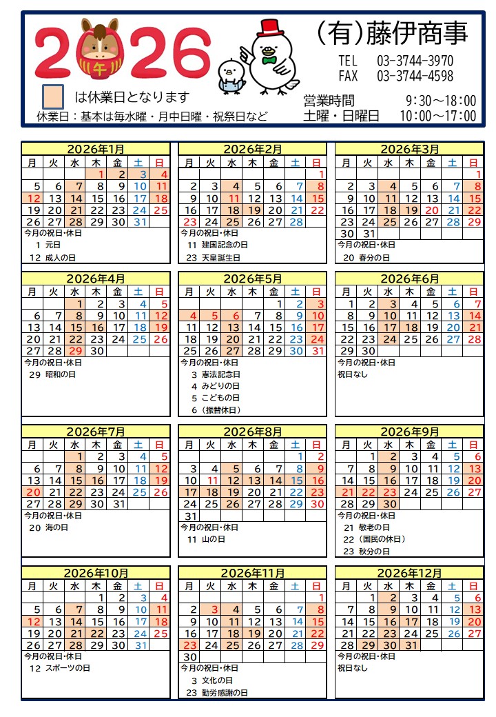営業カレンダー